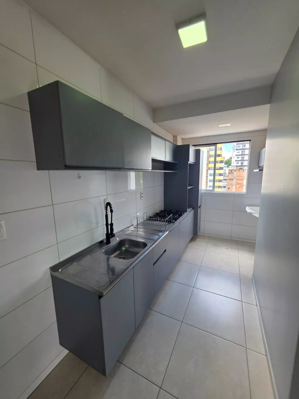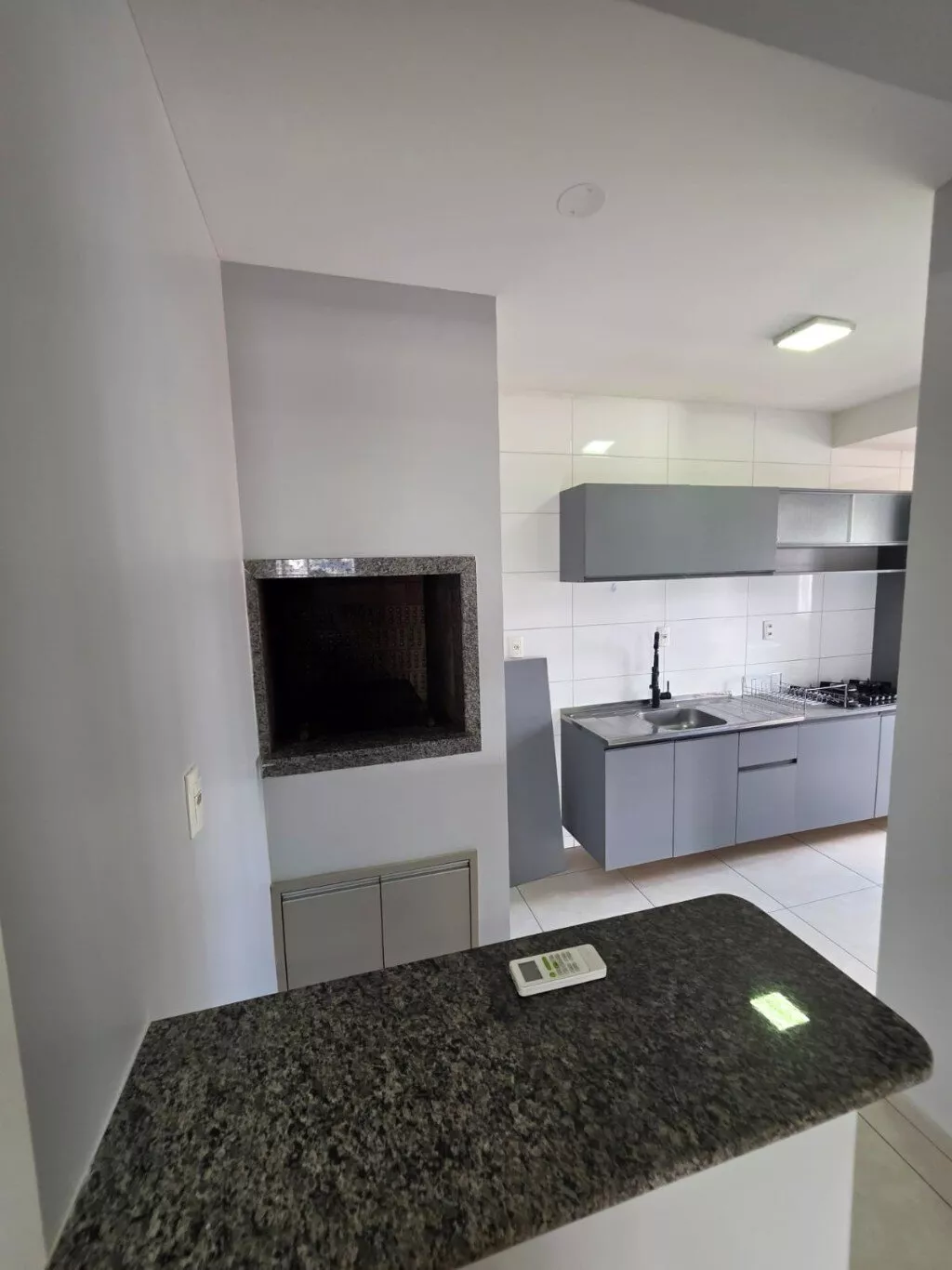 Cozinha com móveis sob medida e fogão cooktop