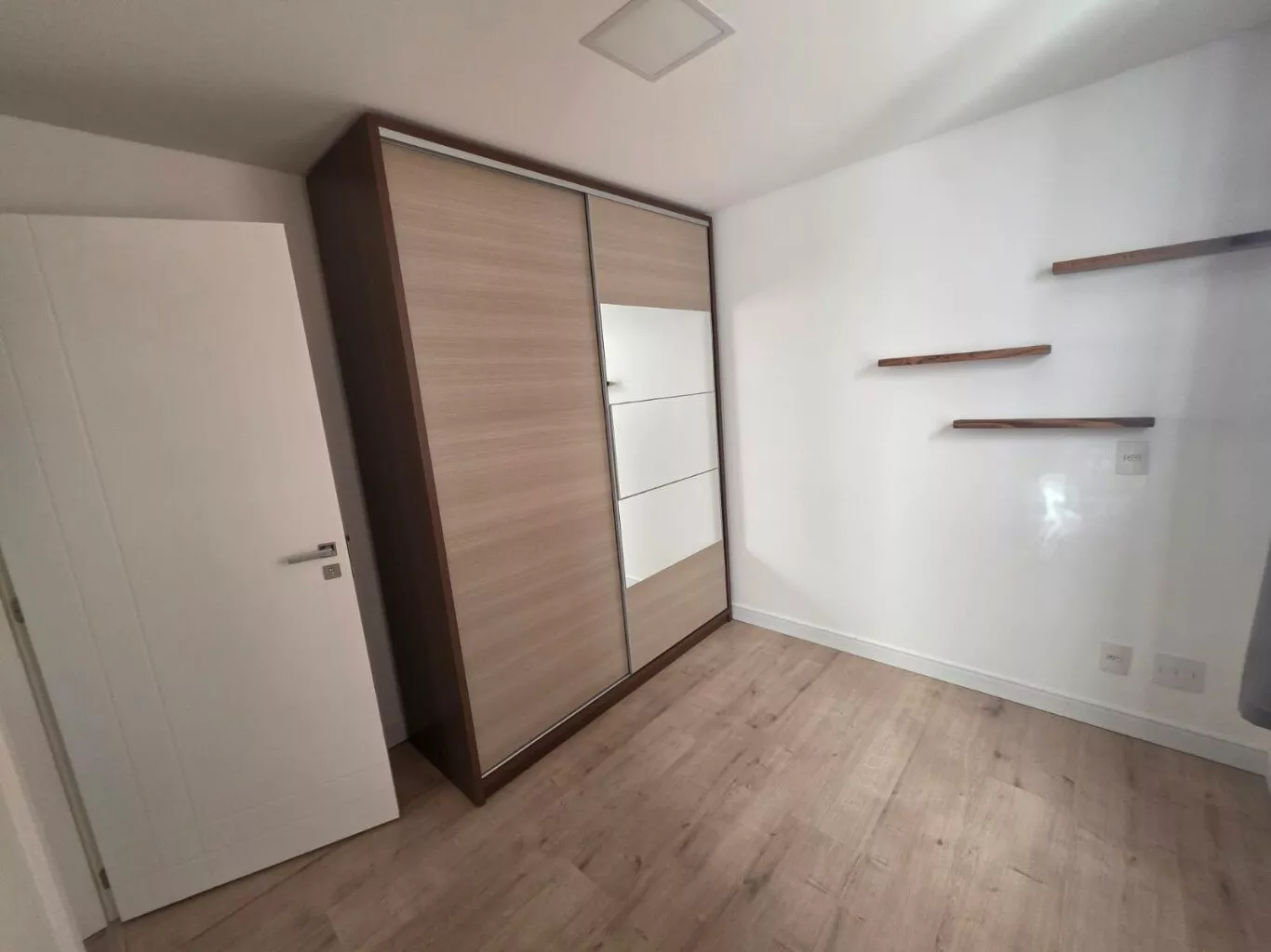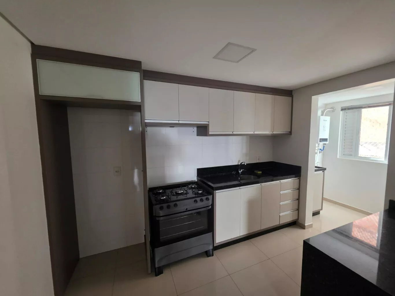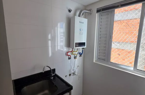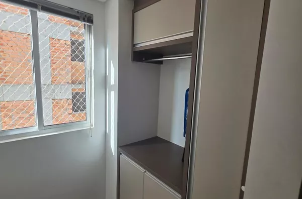 02 quartos com roupeiro (01 com ar-condicionado), sala com móveis planejados e sofá, cozinha planejada com fogão, área de serviço com móveis.