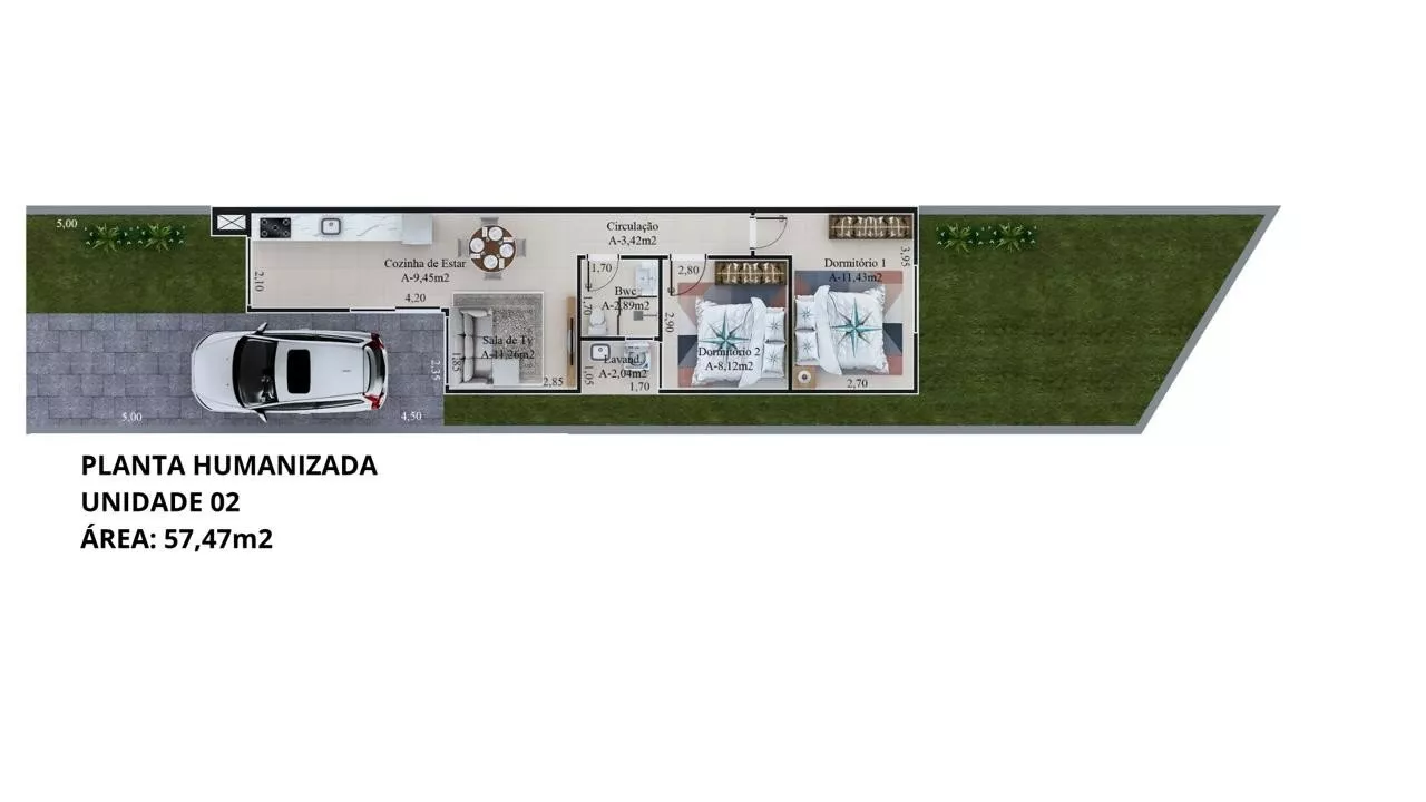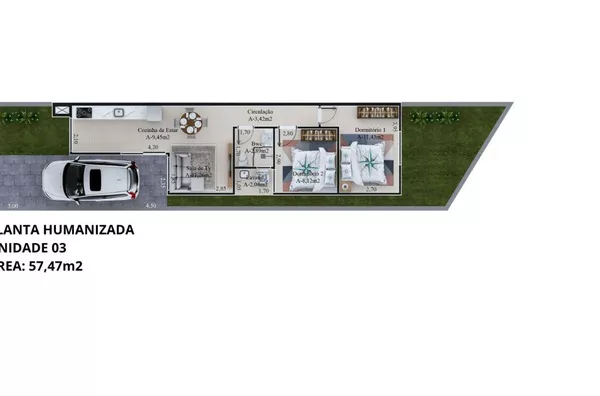 Área construída: 57,47 m²