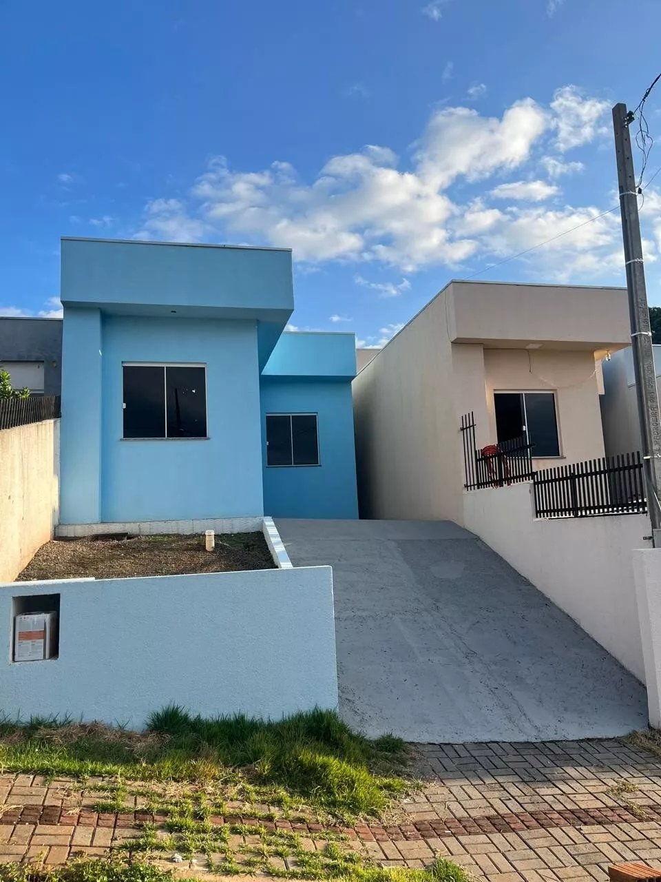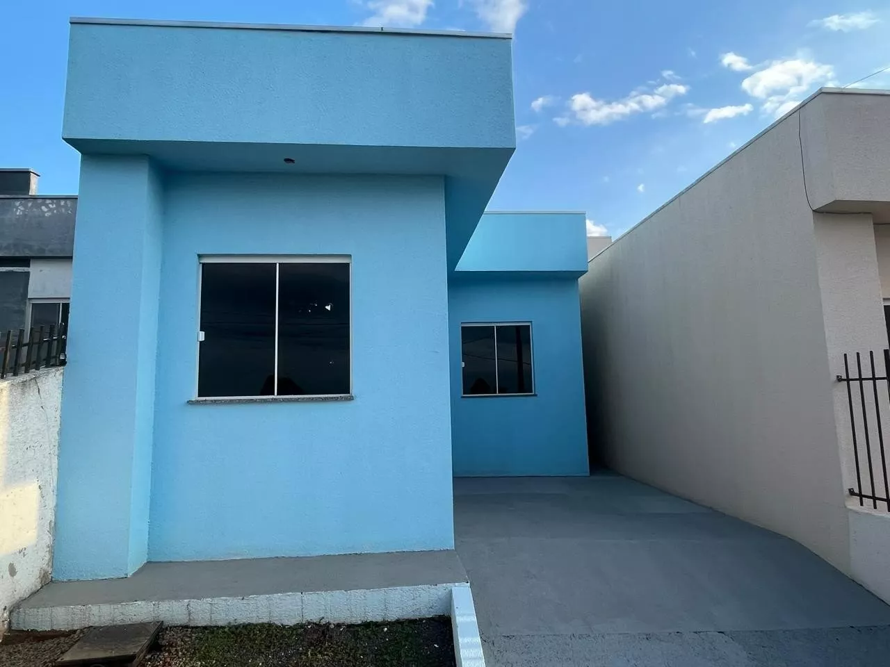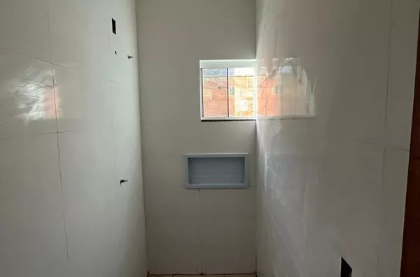 Imóvel com 45,24 m² de área construída em terreno de 100 m², com 2 quartos, sala de estar, cozinha, área de serviço, banheiro social e garagem descoberta. Conta com teto em laje com LED, estrutura reforçada e preparada para segundo pavimento.