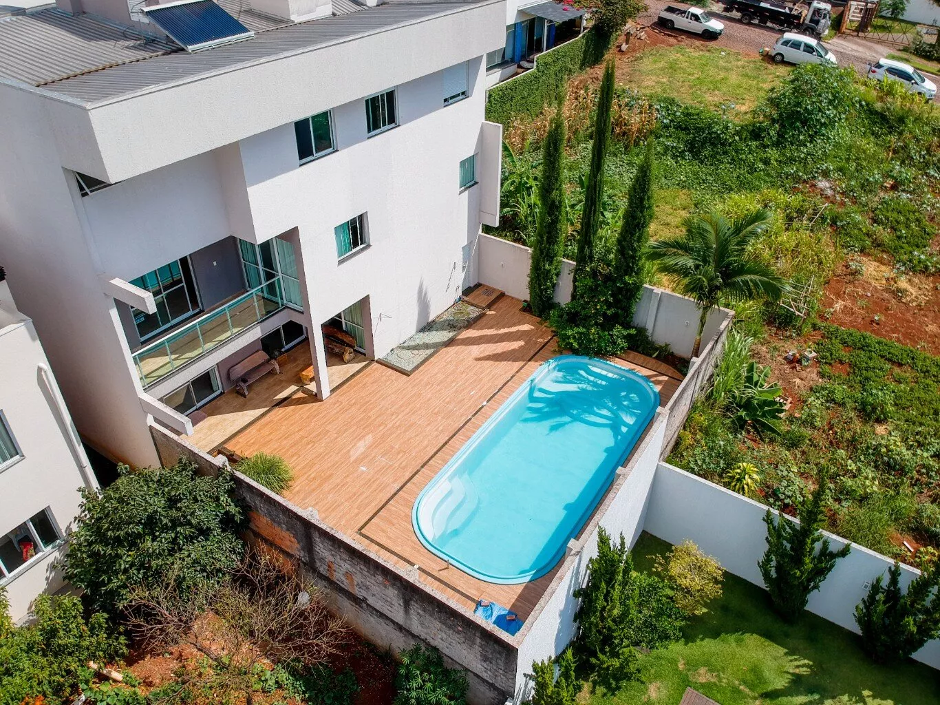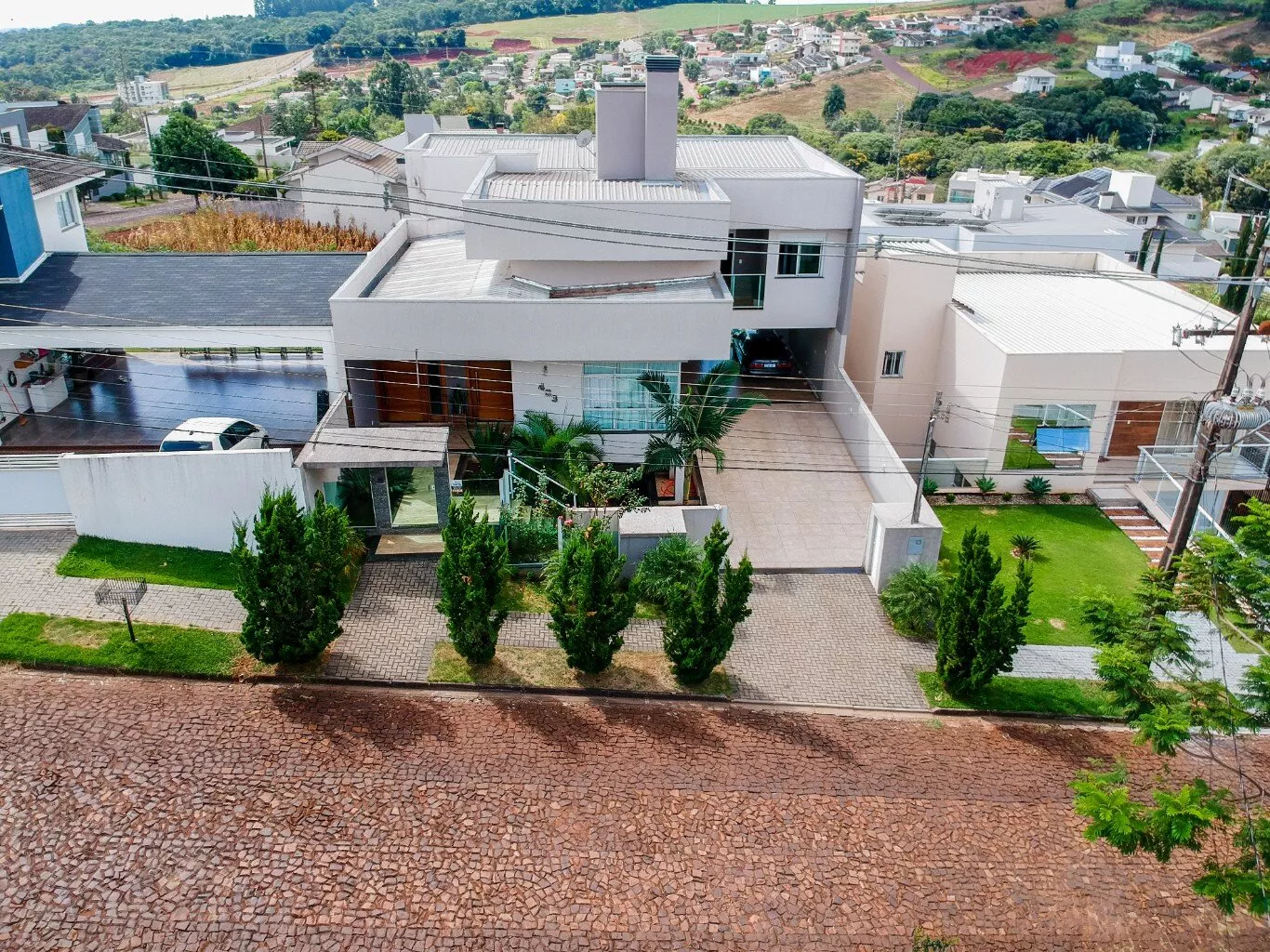 A casa está equipada com um moderno sistema de alarme e câmeras, portão eletrônico, aquecimento solar, cisterna, persianas integradas em todos os quartos e um projeto de elevador em andamento.
